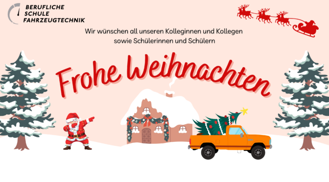 Wir wünschen allen Schülerinnen und Schülern, Lehrkräften, Mitarbeitenden sowie unseren Partnern ein frohes, besinnliches und schönes Weihnachtsfest. Mögen die Feiertage Raum für Erholung, gute Gespräche und viele schöne Momente bieten. Tanken Sie neue Energie, lassen Sie den Alltag hinter sich und starten Sie entspannt in die kommenden Tage.